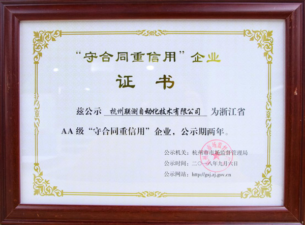 聯(lián)測(cè)再次榮獲“守合同重信用”企業(yè)榮譽(yù)稱號(hào)